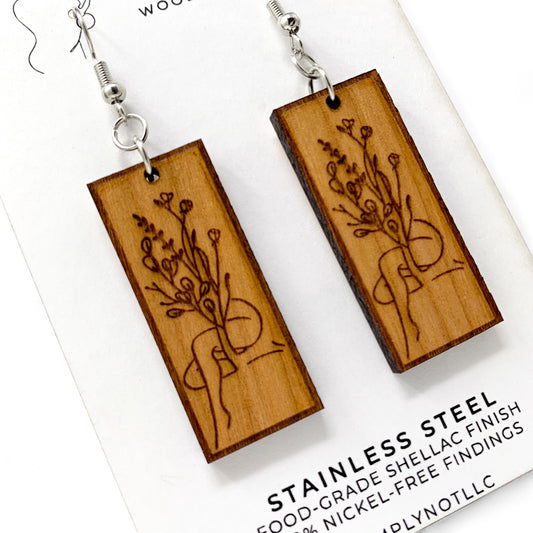 Goddess Body on Cherry Wood Dangle Earrings - Hands on Hips